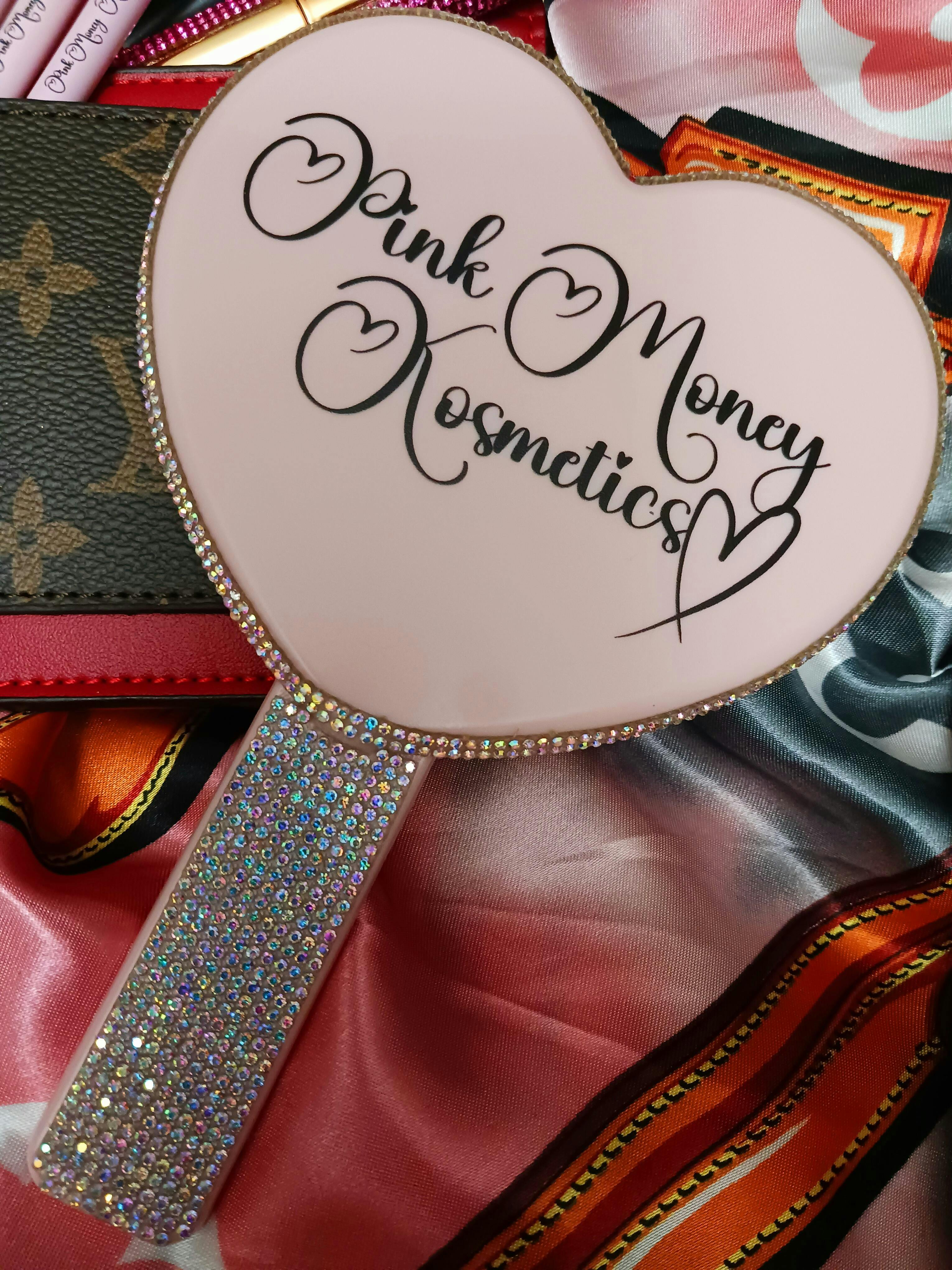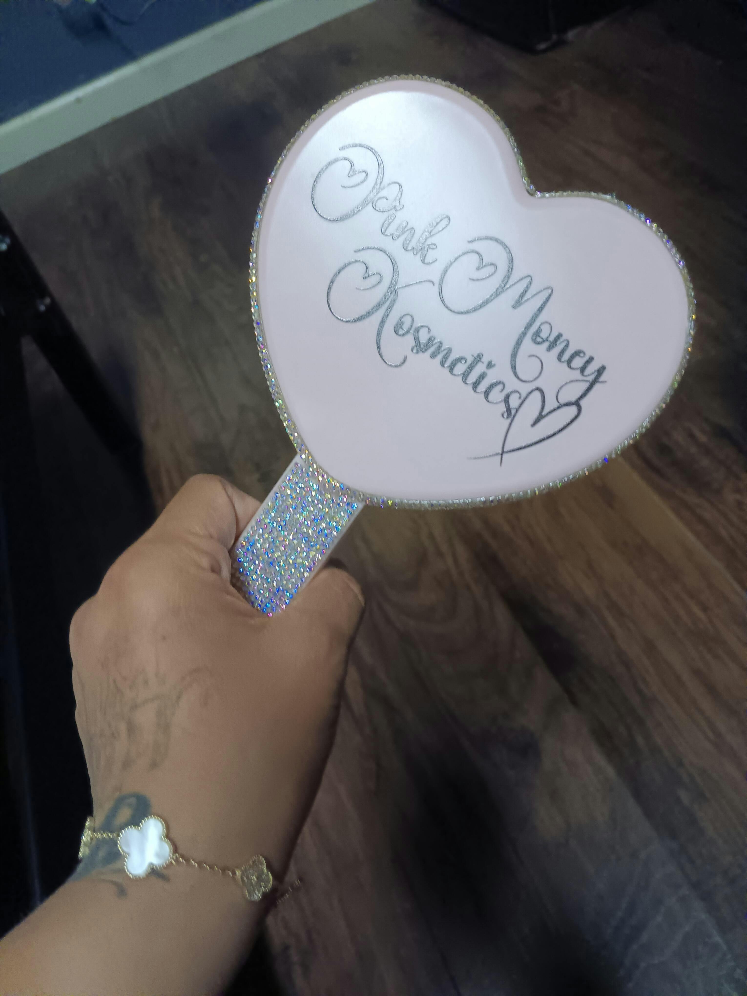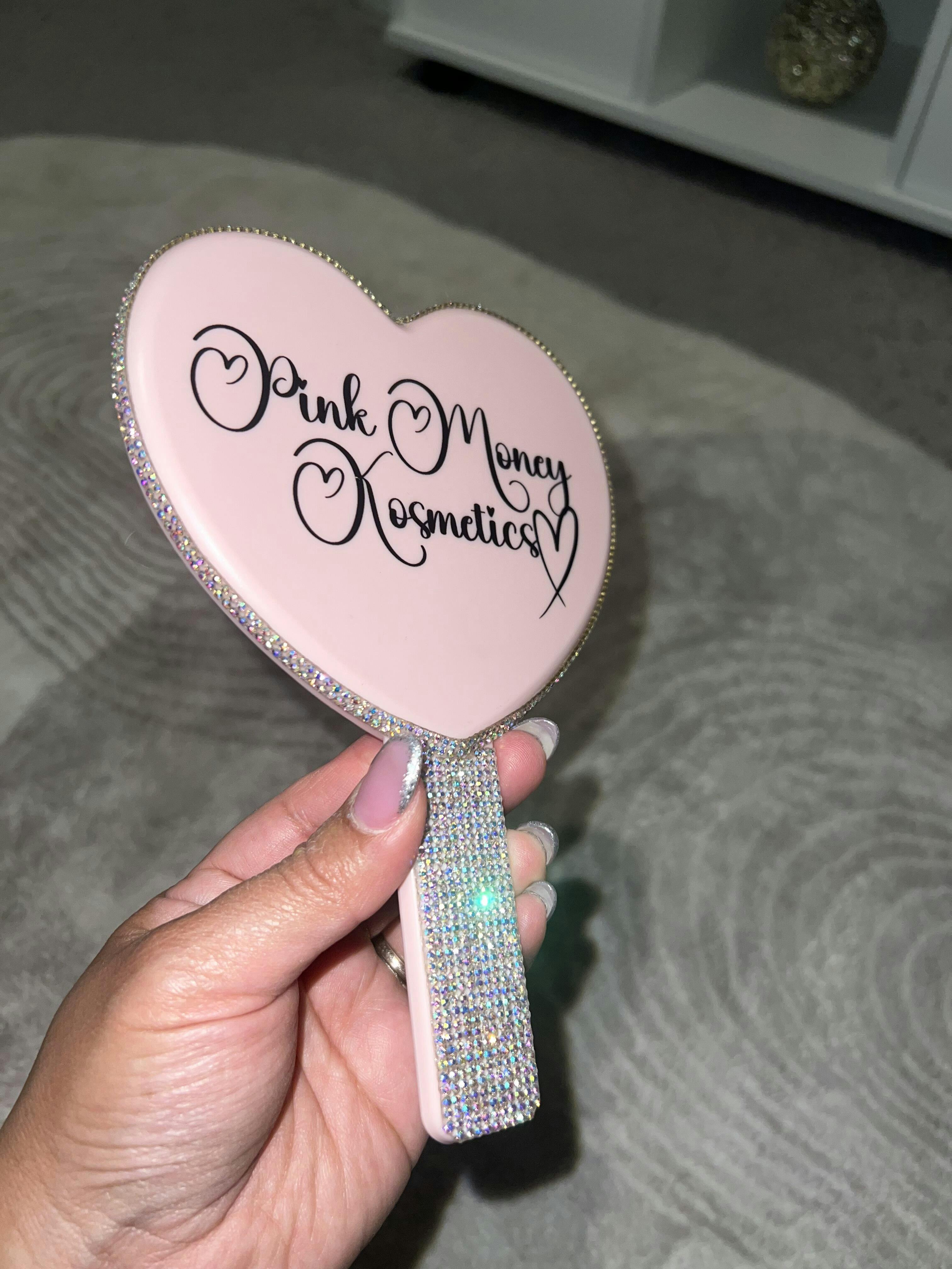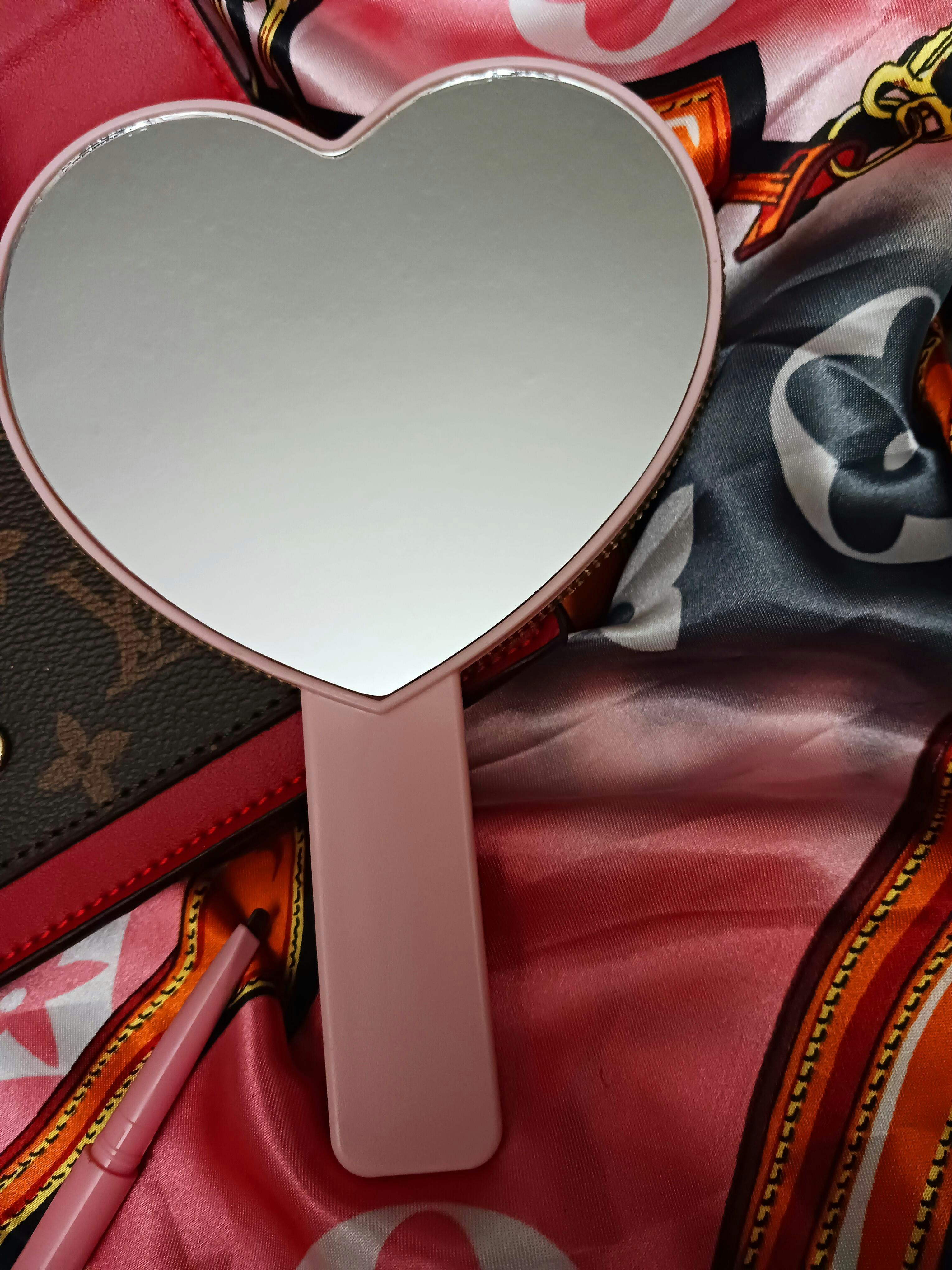 Introducing the Heart shape Mirror - the perfect blend of style and function. This hand held mirror features a beautiful pink heart design with just the right amount of bling. With its compact size, it's perfect for on-the-go touch-ups. Get ready to fall in love with your reflection.